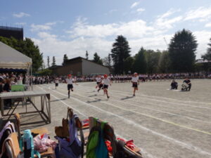 3年生は表現「kajimaaiエイサー~虹色の夢~」と80m走を行いました。