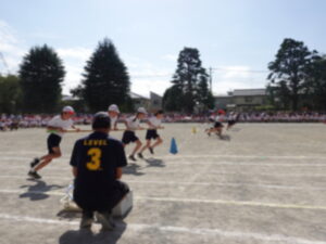 4年生は表現「ハッピー☆☆アンブレラ」と競技「VSタイフーン」を行いました。